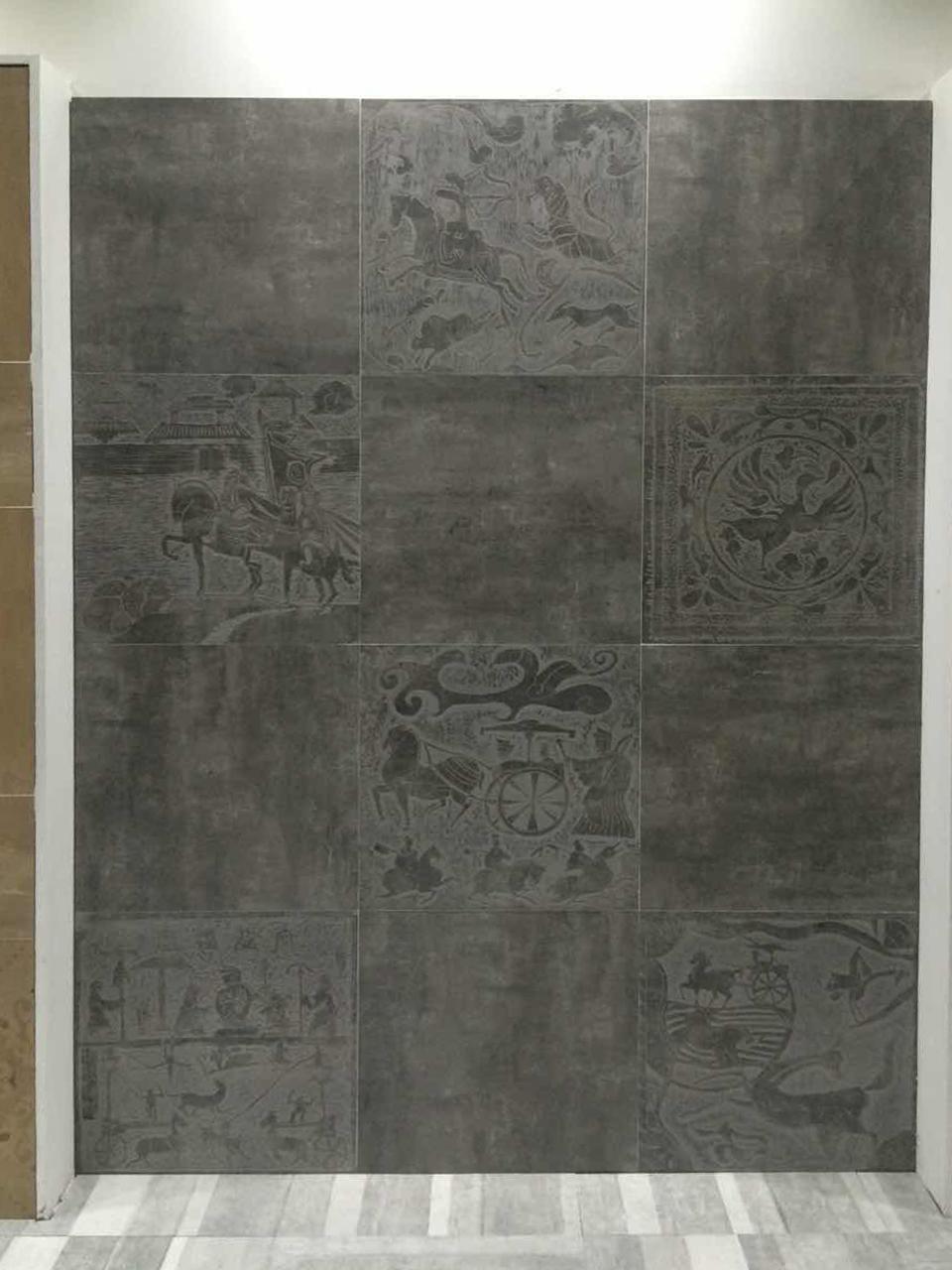 展位有這樣一面展示,遠(yuǎn)遠(yuǎn)看像一幅3D逼真的秦代畫(huà)像圖,走進(jìn)一看才知道這是平面水泥磚。經(jīng)照舊工作人員介紹,這個(gè)系列叫做“秦磚漢瓦”,是一款具有凹陷效果的水泥磚、通過(guò)提取古代畫(huà)像磚圖案,不同層次的色塊,特殊工藝,營(yíng)造了一幅幅別具一格動(dòng)態(tài)皆宜的秦代民俗畫(huà)。這一組系列專門打造具有秦漢故事的水泥磚,顯示出中國(guó)源遠(yuǎn)流長(zhǎng)的文化。這個(gè)系列包含主磚九個(gè)設(shè)計(jì)和配件八個(gè)設(shè)計(jì)。另外據(jù)介紹,此款系列早已獲得第四屆“中意陶瓷大賽優(yōu)秀獎(jiǎng)”殊榮。