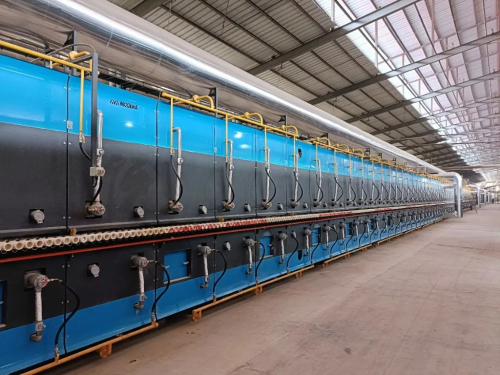 本次合作選用的是兩條摩德娜MRD-HB6系列多層自循環干燥窯(L=115.5M)及MDS系列節能高效寬體窯(L=556.5M)米,線速度35米/分鐘,主要產品規格為400x800mm,最低日產量十萬平方米!在保證質量和兼顧大產量的雙重要求下,整個項目從設計、材料、制造、安裝以及調試無疑是行業裝備的又一次極限升級!該項目配置先進的數智化生產線及窯爐燃燒系統和智能溫控管理軟件,科學分析坯體表面強度和氧化速度設計合理的燒成曲線,計算合理的窯爐空間高度,保證煙氣合適的流動速度,加快煙氣對坯體的熱交換能力。