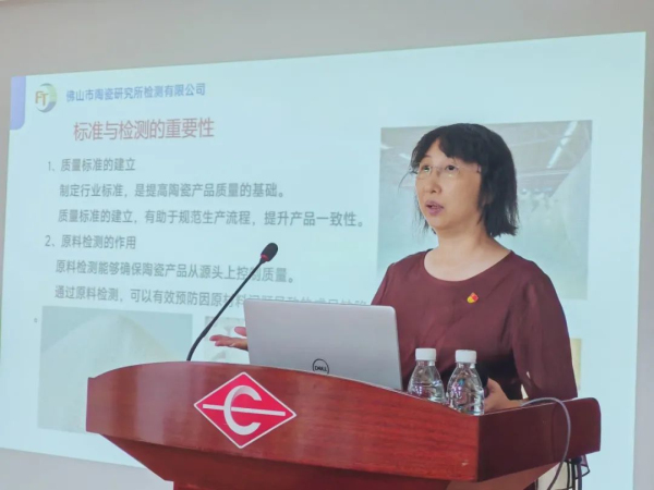 最后,佛山市陶瓷研究所檢測有限公司總經理林珊圍繞《陶瓷原料最新檢測技術與標準》進行了講解,她圍繞著陶瓷行業現狀分析、標準與檢測的重要性、常見的陶瓷原料檢測項目等內容介紹了當前陶瓷原料檢測領域的最新技術進展和標準化趨勢和佛山陶瓷學會標委會的工作開展狀況,鼓勵企業積極采用新技術、新標準,提升原料質量控制水平,為生產高質量陶瓷產品奠定堅實基礎。