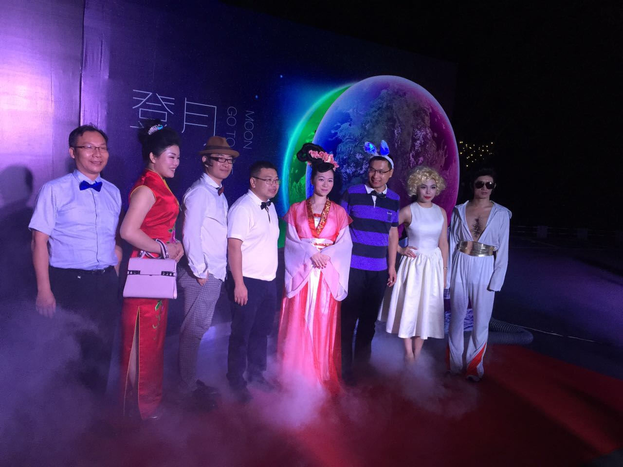 男士女士們一身復古風,背帶、領結、波點傘裙還有旗袍,燈光映襯著夜空、音樂陶醉著銀海,從步入“穿月”大道就已經迷茫了自己是否漫步太空!
